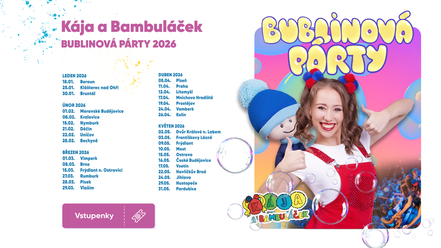 Kája a Bambuláček - Bublinová párty 2026 - Klášterec nad Ohří